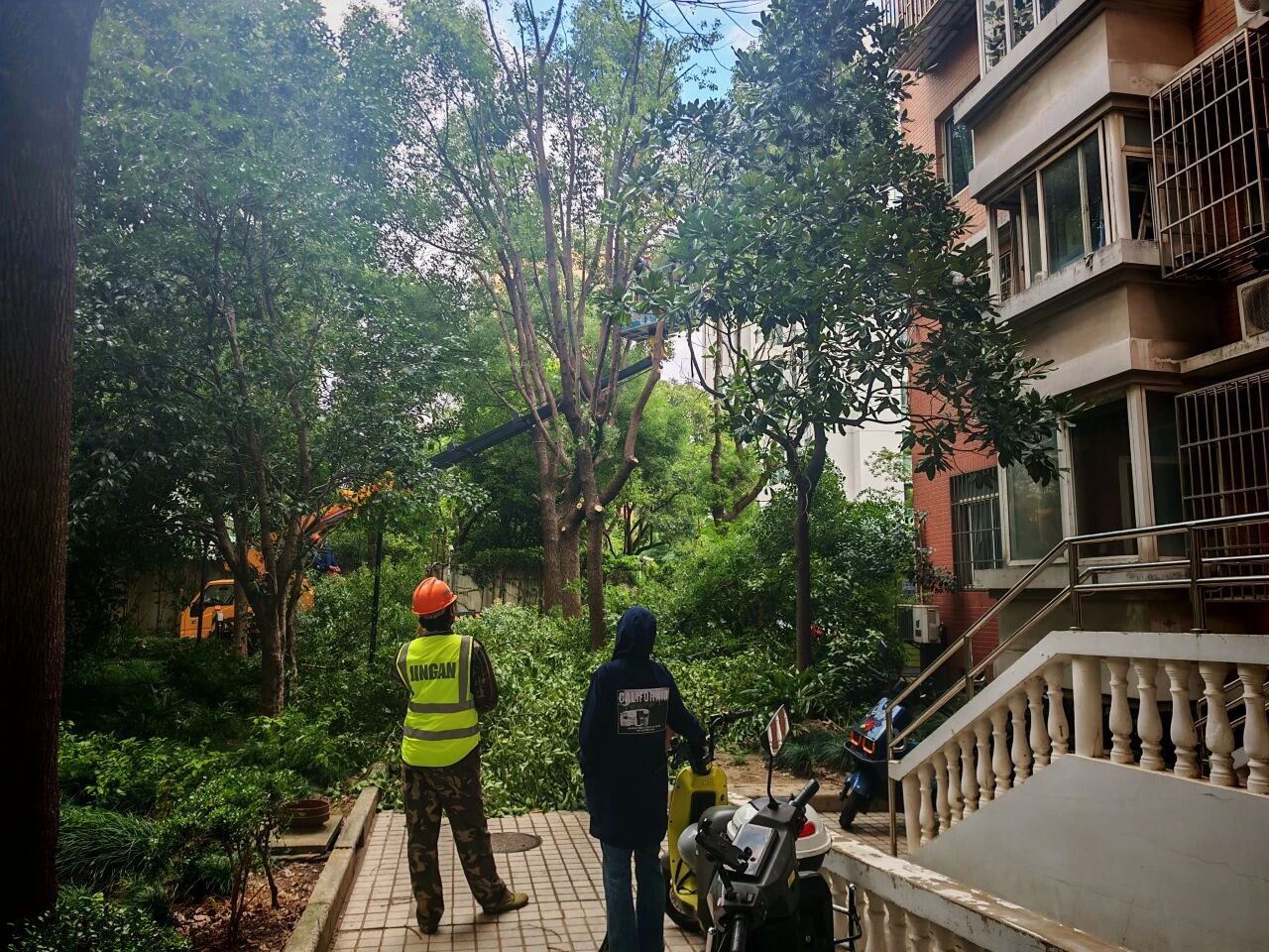 绿化部门施工人员严格按照既定方案开展修剪作业,对过高枝干进行合理截干,对密集枝叶进行科学疏剪,既保证彻底解决底层采光问题,又确保修剪后的树木保持良好的生长状态和美观的景观效果。针对施工期间产生的枝叶垃圾,党总支协调物业安排专人及时清理清运,避免影响居民正常通行和小区环境。