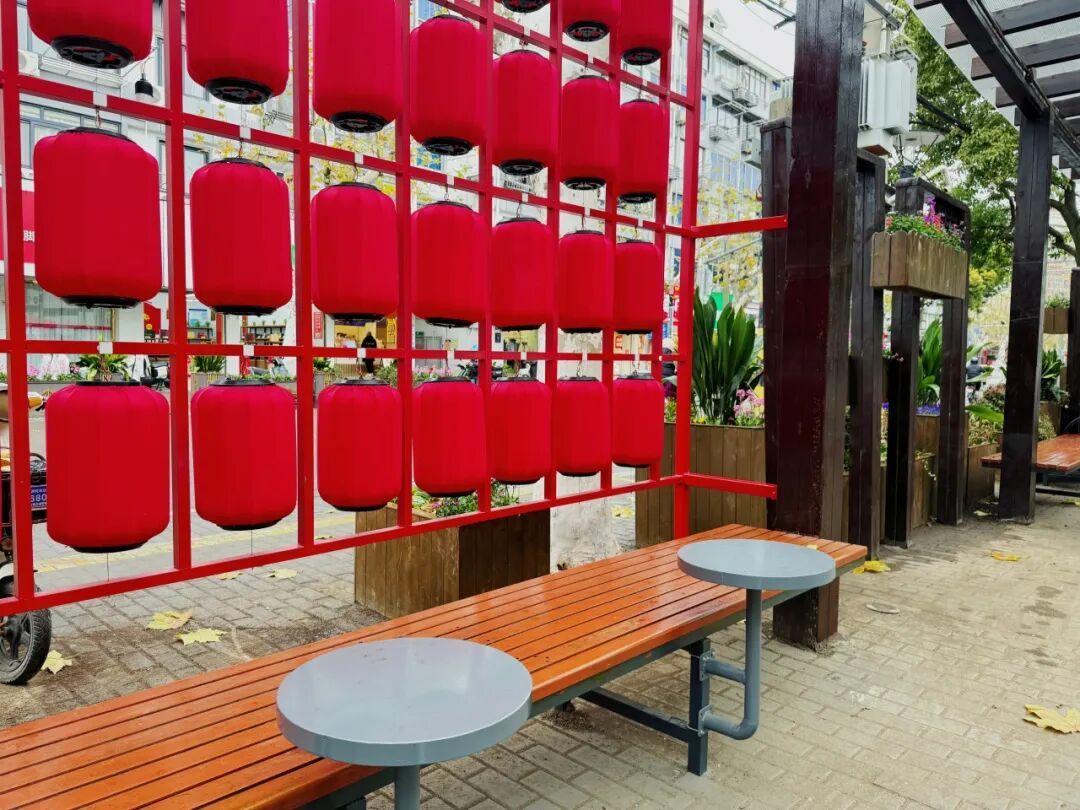 如今的长廊,红灯笼高挂,国风牌匾“常安”“喜乐”等点缀其间,焕然一新的凳椅与棋桌整齐摆放。闲暇时分,阿姨们并肩坐着拉家常,爷叔们组团对弈,路人也能在此寻得一处静谧角落歇脚,感受老街的烟火温情。