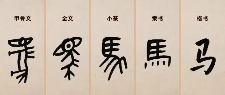 “马”字始见于商代甲骨文及商代金文,是中国文字中历史非常悠久之字。“马”“騳”“骉”层次叠进的演绎,是一马当先、双马共驱、万马腾飞的图腾,凸显了中华优秀传统文化的思想特征和价值追求。