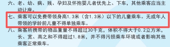身高在1.3米及以下的儿童
