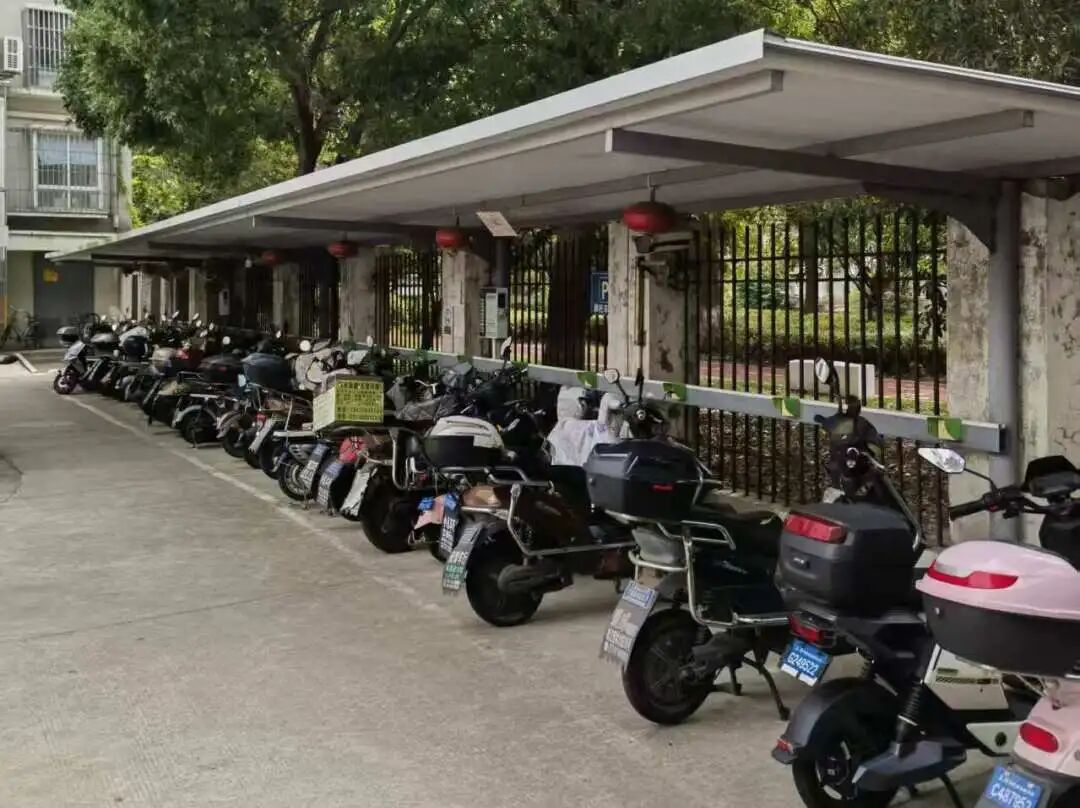 针对电动车充电需求,党总支通过“细心瞧”服务队、议事会等广泛收集建议,积极盘活社区闲置空间,陆续新建7处集中充电车棚,其中5处位于西新苑小区内部,2处设在农校家属院。所有充电车棚均统一悬挂安全责任牌,明确管理责任,从源头上消除飞线充电带来的安全隐患。