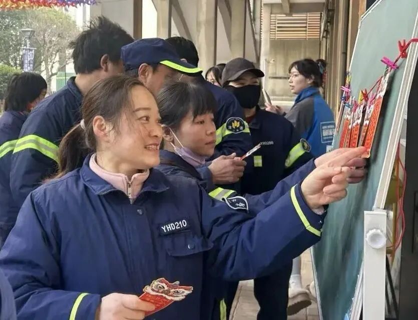 活动深入阐释了“以党建赋能为核心、以手工为纽带、以文化促共建”的核心内涵,让党建服务延伸至基层一线,让关爱暖意直达劳动者心田。暖场互动环节,融合春节民俗与环保理念的灯谜卡片,引发了大家的热烈参与,这份将民俗趣味与职业特点巧妙结合的互动设计,让户外劳动者感受到传统文化的独特魅力,更感受到了党建服务的暖心与贴心。