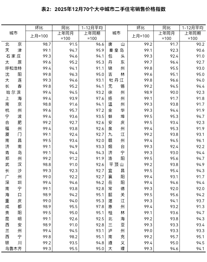 2025年12月份,70个大中城市商品住宅销售价格环比总体下降、同比降幅扩大。