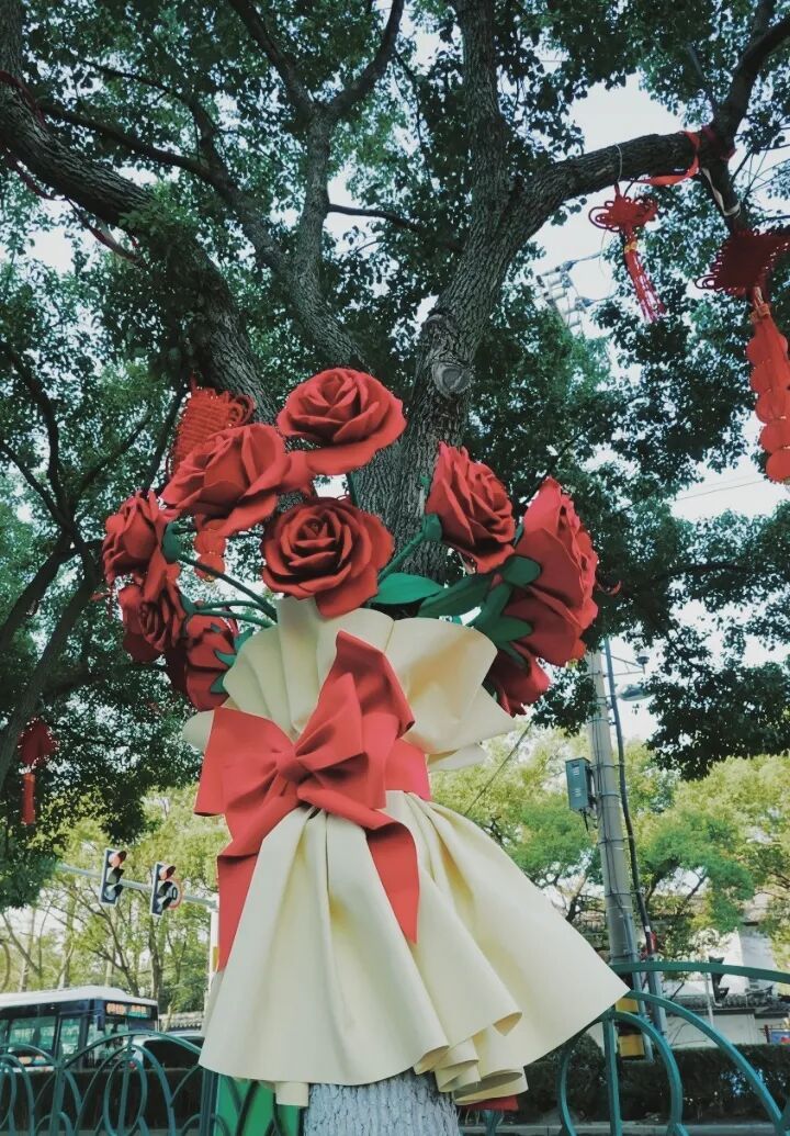 寒风渐起,城桥镇的年味已悄然蔓延。东门路与北门路交叉口,那束2米多高的大型捧花,与树干相融,花瓣层叠透着暖意,成为街头首个新年打卡点,迎来众多周边群众和路人拍照打卡。