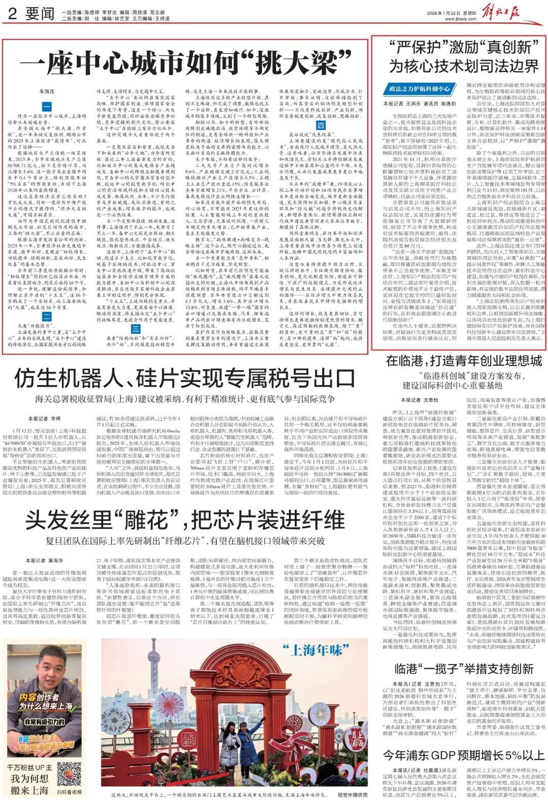 除了个案裁判之外,司法的引领也未曾止步。上海法院发布护航新质生产力发展专项司法意见,提出强化创新成果保护等12项工作举措。近三年来围绕医疗器械、互联网软件、芯片、人工智能技术等领域发布专项审判白皮书13份、典型案例101件,以法治之力服务高水平科技自立自强。