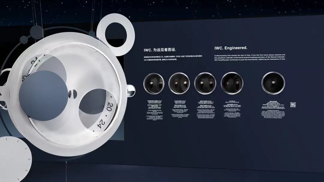 展览以“致敬永恒”为主题,呈现了IWC万国表在复杂功能领域的里程碑作品,包括葛珞斯·克劳斯(Kurt Klaus)于1985年研发的万年历模组——这一设计以仅81枚零件实现可持续运行至2499年无须校正,体现了品牌对精准与永恒的极致追求。