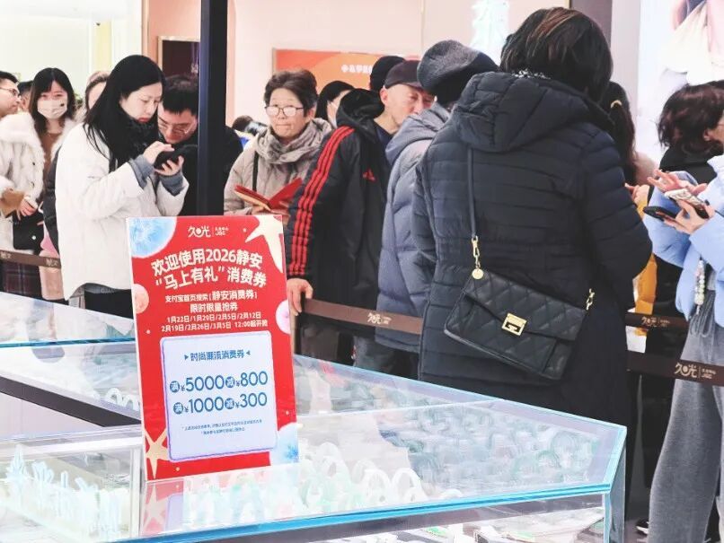 数据显示,本轮消费券在开抢后仅19秒便被全部领取完毕,12点01分即完成首笔核销,火爆程度远超预期。本次消费券覆盖静安区千余家商户,涵盖时尚、美妆、精品连锁等多元场景,用实打实的惠民福利,拉开了静安新春消费季的序幕。