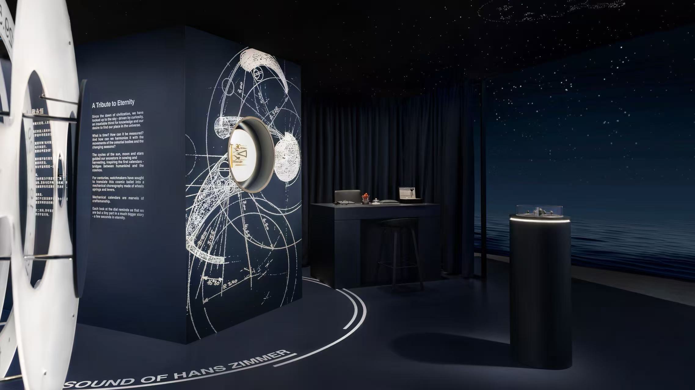同时,展厅中央特设大型南北月相装置,以等比例放大技术还原宇宙节律,结合奥斯卡奖得主汉斯·季默创作的专属乐章与品牌大使张若昀的语音导览,为观众打造视听双重盛宴,凸显高端消费场景中文化叙事与感官体验的协同创新。