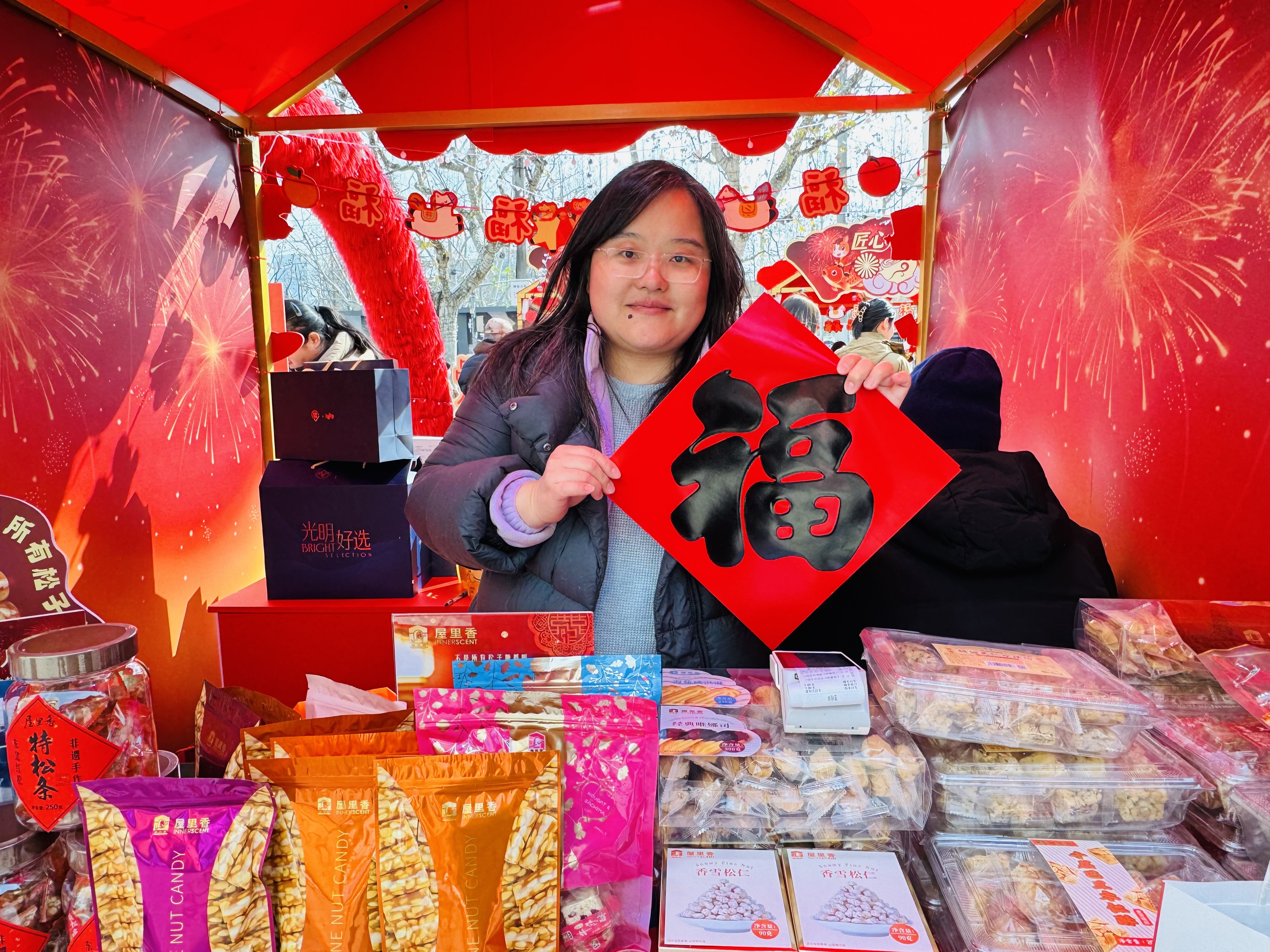 活动现场,市民不仅能看、能尝,还能参与春联、拓印等非遗体验,消费任意金额即可获赠“新春福字”一份,为新春佳节增添一份独有的仪式感。