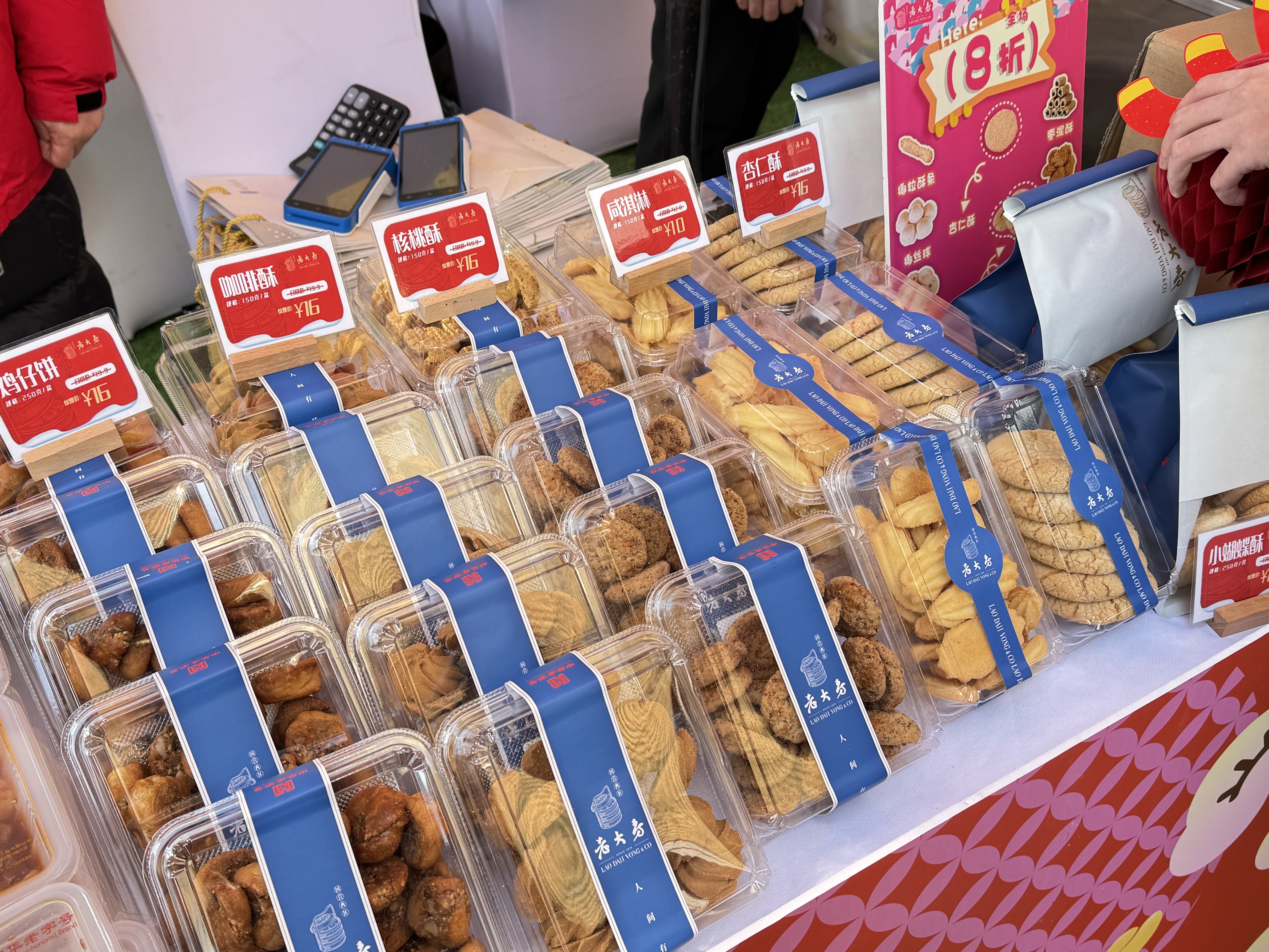 中午12时,久光百货外广场已人流如织。从外广场到步行街通道,数十个摊位整齐排开,来自全区的老字号品牌集中亮相,仿佛把整个上海的“年味记忆”搬到了静安街头。
