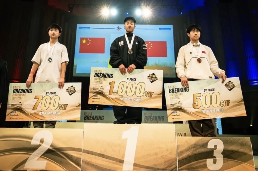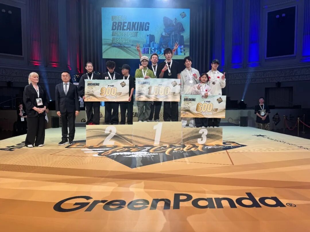 日前,由世界体育舞蹈联合会(WDSF)主办、澳大利亚体育舞蹈联合会承办的2026 WDSF World Breaking Dancesport Festival在澳大利亚布里斯班收官。中国霹雳舞队在本次赛事中斩获4金1银2铜的佳绩,其中,虹口BBoy商小宇、李后桦与队友郭朴组成的Team China队获得团队赛3v3金牌,黄子逸获得青年男子组铜牌! 商小宇(冠军领奖台中间)、李后桦(冠军领奖台右一)与郭朴组成的Team China队获得团队赛3v3金牌