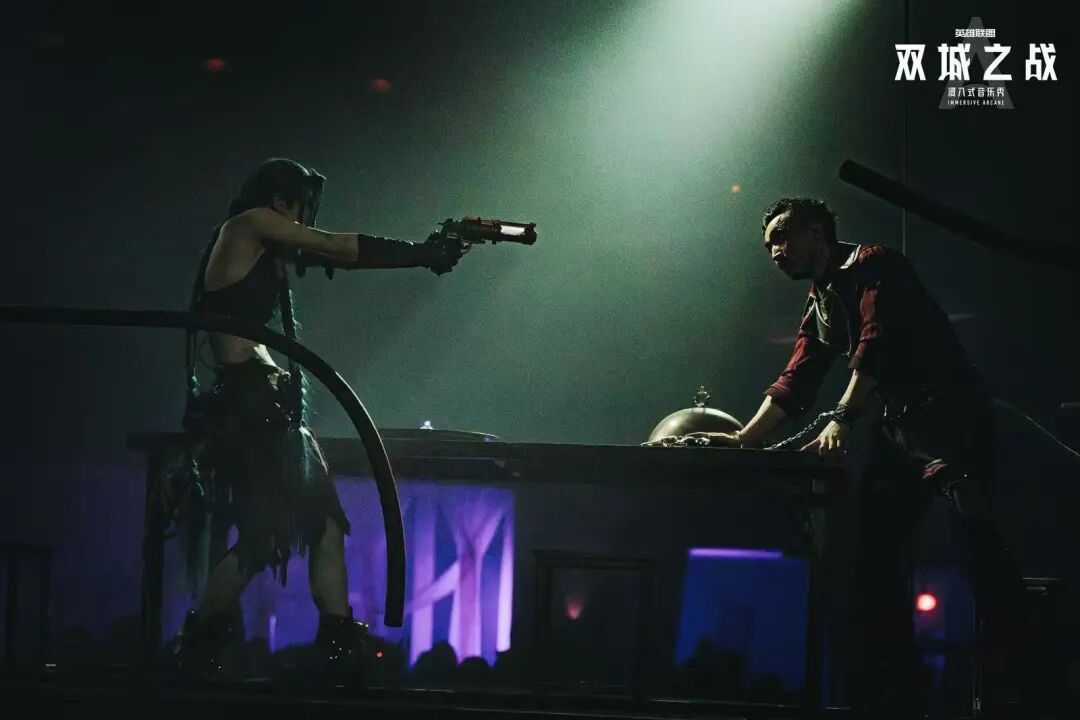 浸入式音乐秀《双城之战》突破传统舞台边界,将音乐剧、浸入式戏剧、肢体剧场与特技打斗有机融合。台词不再是唯一的叙事方式,空间的调度和演员的身体语言多维度推动着故事的演进。
