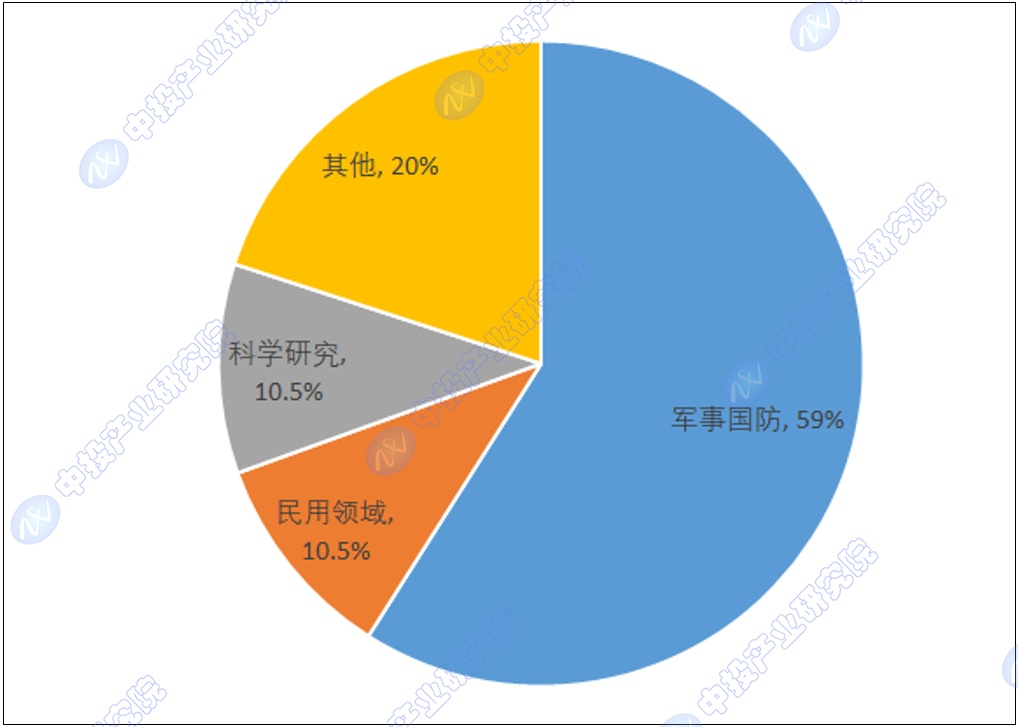 量子精密测量技术的核心价值在于其高精度和抗干扰性,这使其在国防、能源、医疗、通信等多个行业都具有极高的应用潜力。2024年,中国量子精密测量下游市场中,用于军事国防占比为59%,约为1.74亿美元。民用与科学研究均约为0.31亿美元。