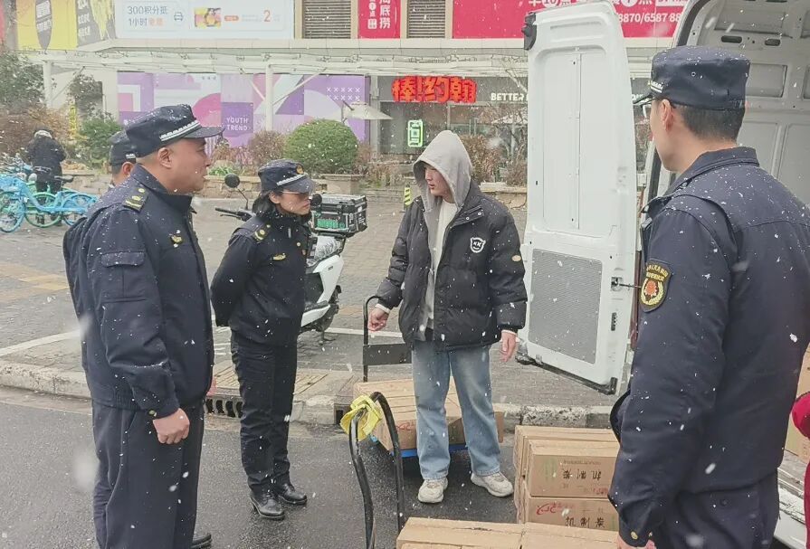 风雪早已打湿了他们的制服,低温冻红了他们的双手与面颊,但这群“平安卫士”依然坚守在街头巷尾。他们化身“流动哨兵”,及时发现并协同处置路面积冰、杂物障碍等问题,默默守护着每一条街道的畅通无阻,保障着每一位早出晚归行人的“脚下安全”。