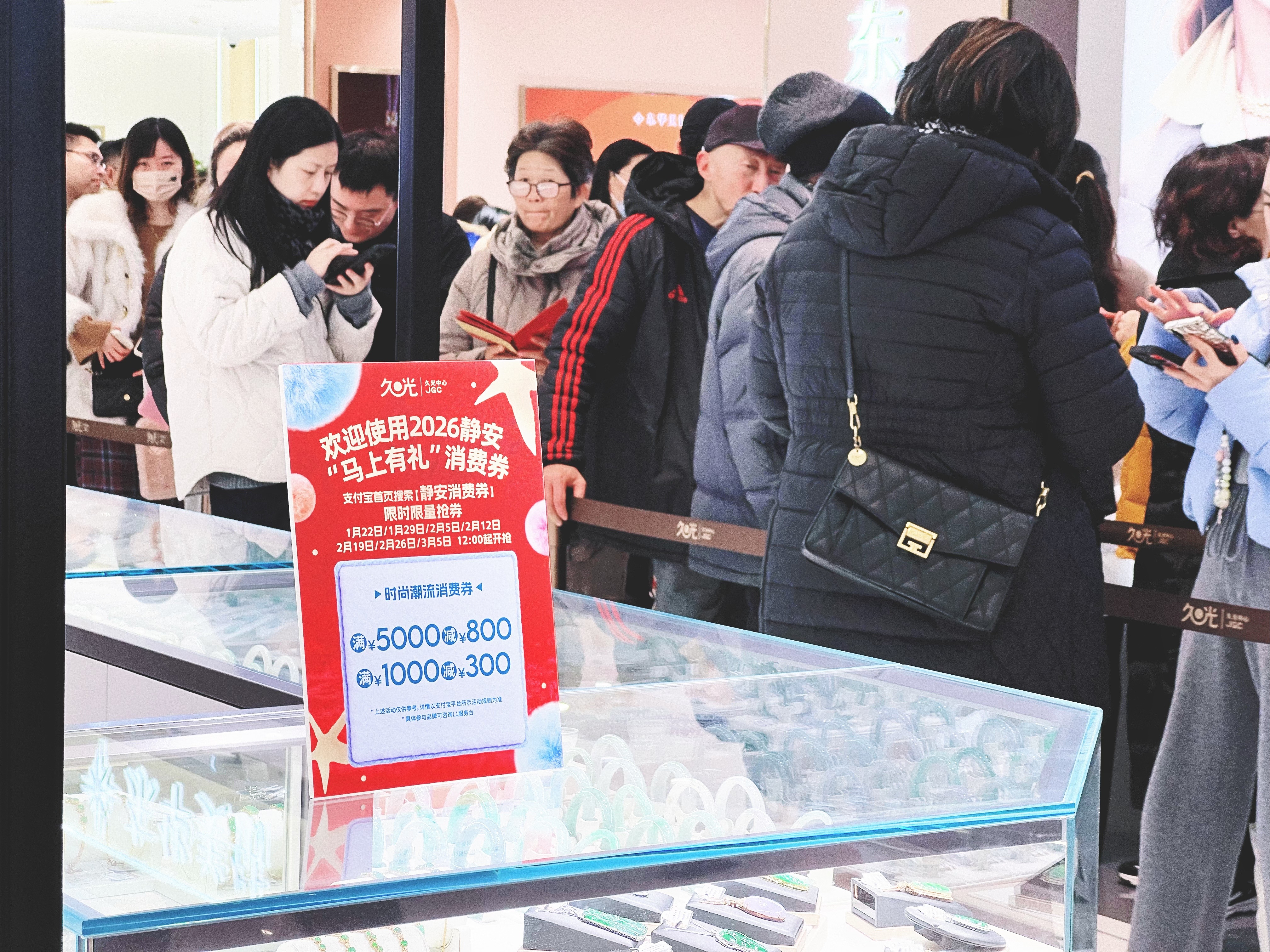 黄金珠宝品类成为本次消费券发放后的“热门赛道”。一家知名黄金品牌店员介绍:“春节本就是黄金销售旺季,这次叠加静安消费券和商场大促,我们提前制作了详细的‘用券攻略’,帮助顾客一键算清折后价。”