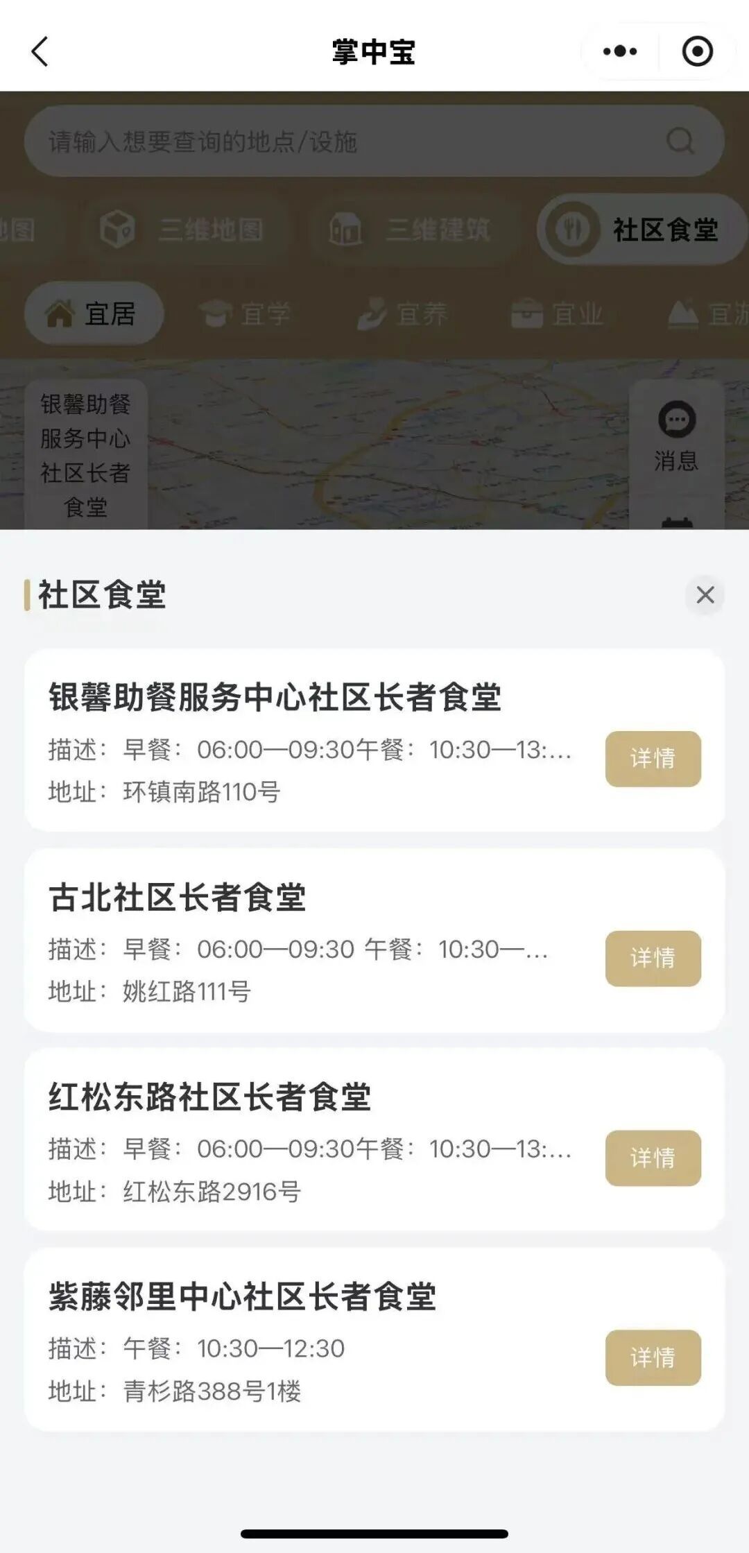 “掌上地图”板块则打破了传统二维地图的局限,依托三维建筑模型,使部分复合型空间实现“立体可穿透、服务可交互”的体验。就像拥有一双“透视眼”,党群服务中心、公园绿地等设施的分布细节清晰呈现,点击对应点位就能查看具体服务内容,精准定位步行可达的服务资源。