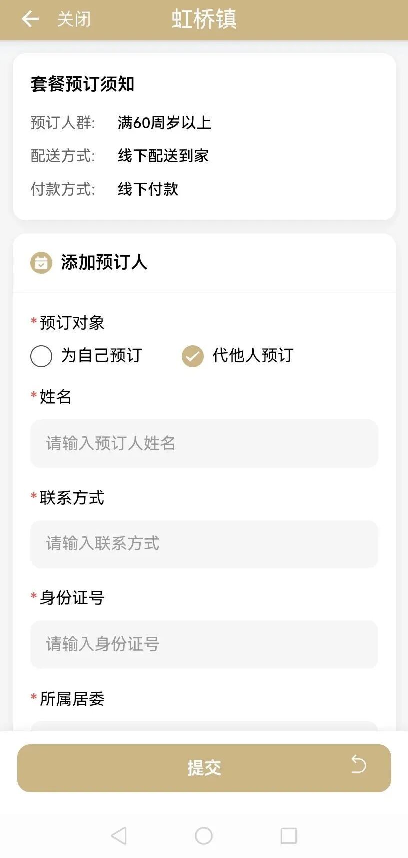 记者实测体验了这款工具的核心功能,进入“虹桥掌中宝”后,掌上地图、数字集市、个性推送等六大板块一目了然,其中“数字集市”功能最为丰富,点击其中的“社区食堂”,镇域内4家社区食堂的供应时段、地址即刻显现,还支持为本人或亲属预订送餐。为本人预订时,系统自动调取个人信息,仅需补充所属居委和配送地址即可提交;代他人预订也只需填写基础信息,操作流程简洁易懂。