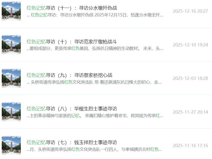 在“头桥知新”开设“红色记忆寻访”专栏,持续发布系列主题推文,打造云端红色思政课堂阵地。