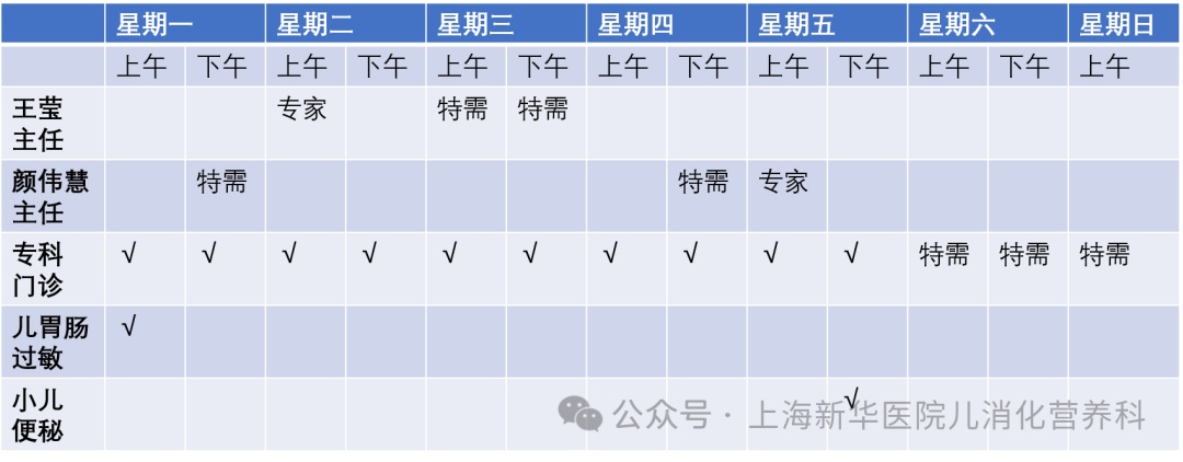 附:新华医院儿消化营养科杨浦院区 门诊信息