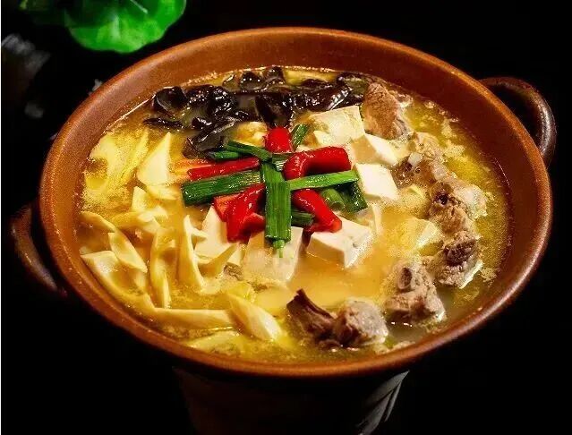 白嫩的盐卤豆腐、山野笋干与腊肉在汤中翻滚交融,炭火让每一寸孔隙都吸饱了汤汁的醇厚,豆香与肉香融合,暖意融融。