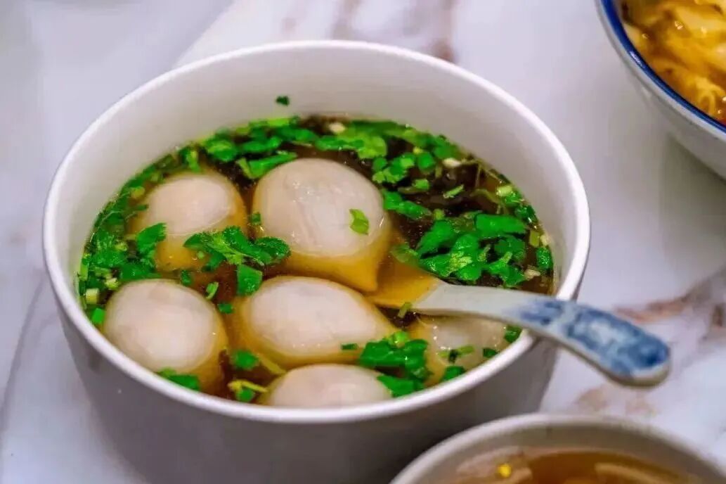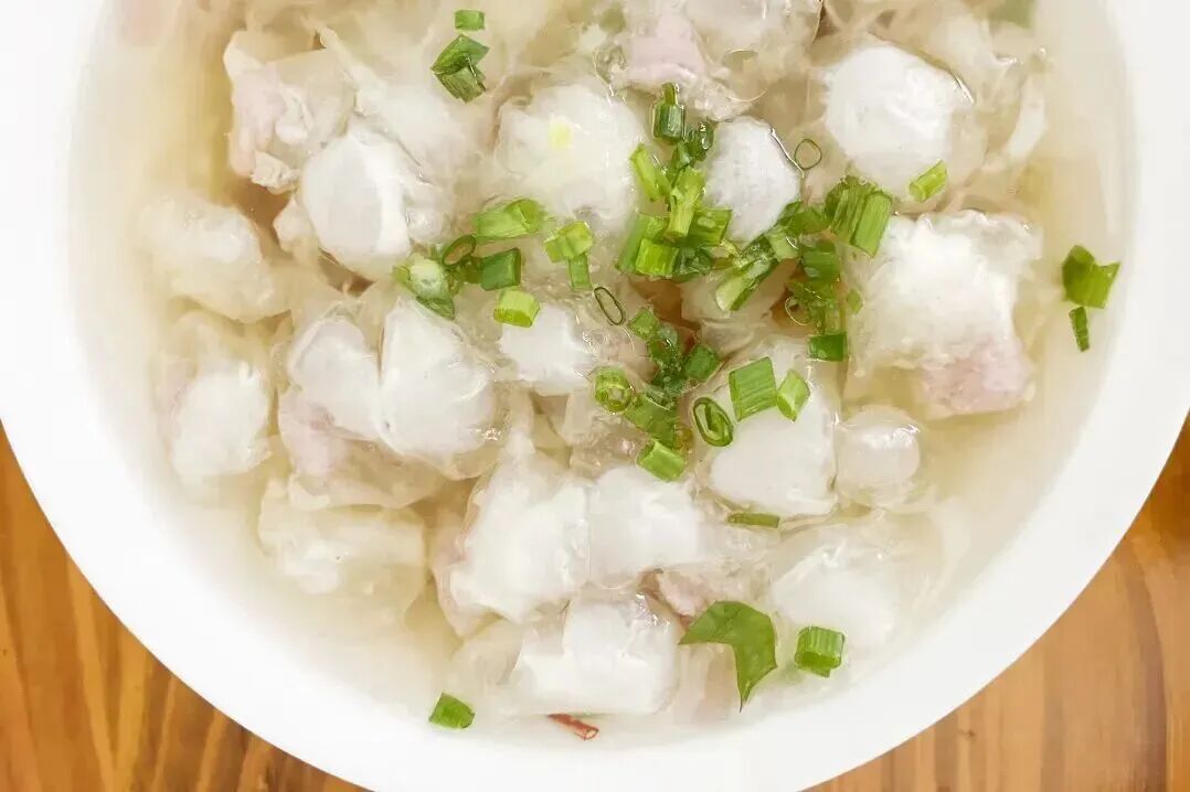 在龙游,汤圆告别了甜糯的寻常印象,口味咸鲜滚烫。它以番薯粉为主料,通透弹滑,内里裹着豆腐、肉末与笋丁炒制的馅料。