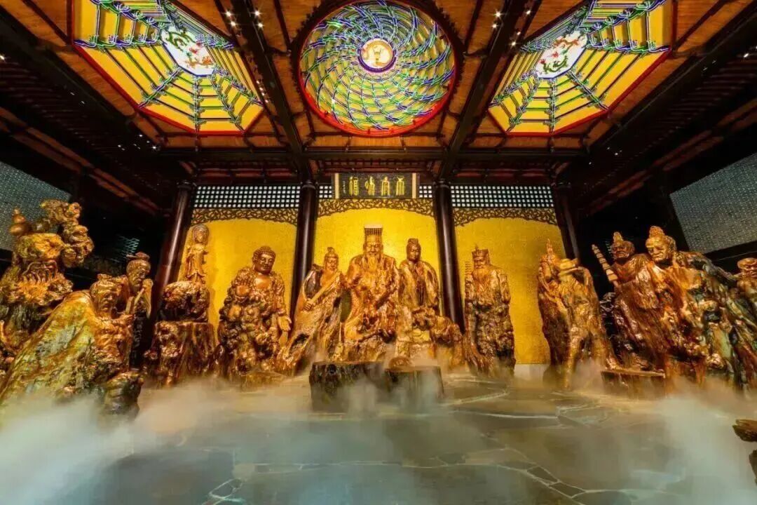 根宫佛国,堪称根艺的“四库全书”,是全球唯一的根文化主题5A景区。它融根艺、盆景、奇石与园林于一体。数千根雕巨作耸立,最高逾五米,重近九吨!漫步其间,与五百罗汉神交,尽享内心宁静。