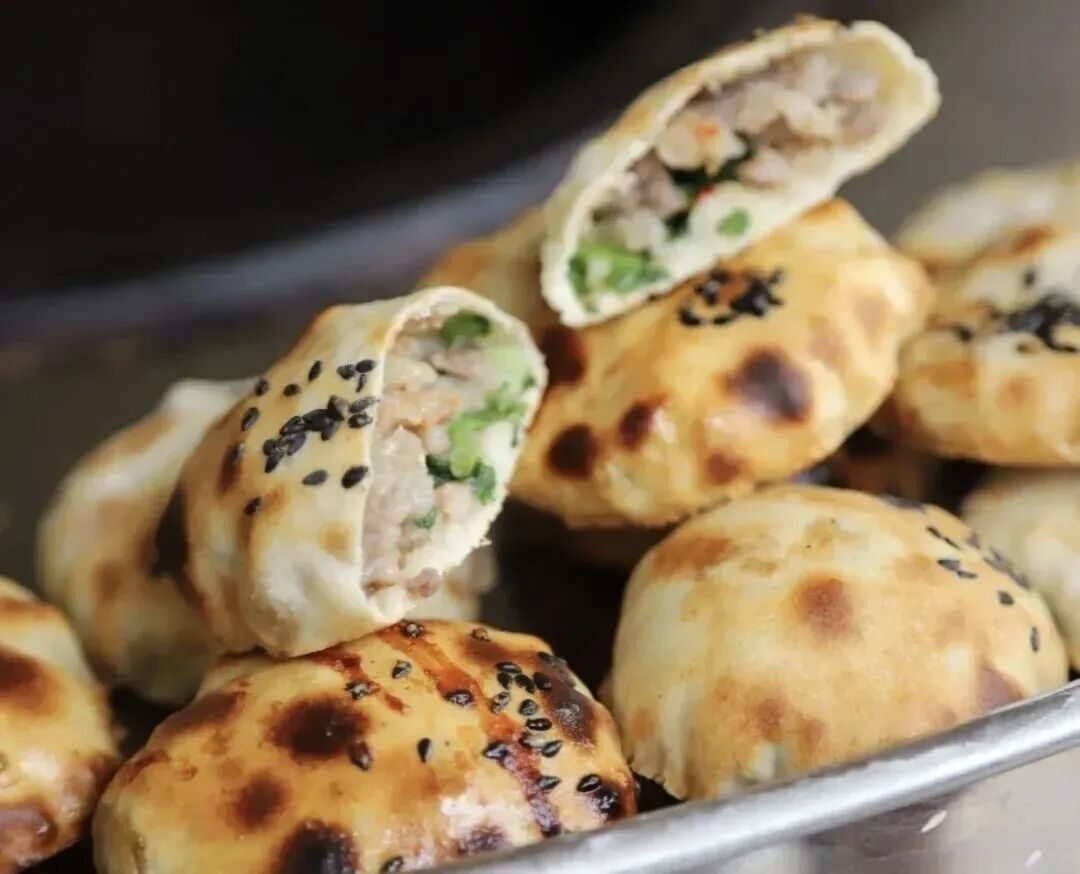 衢州烤饼仅有巴掌大小,功夫全在馅料里。土猪膘肉切成小丁,肥瘦相间,与梅干菜、辣椒末、葱花搅拌在一起。梅干菜的咸香醇厚是灵魂,肥膘在高温下化作滚烫的油汁。