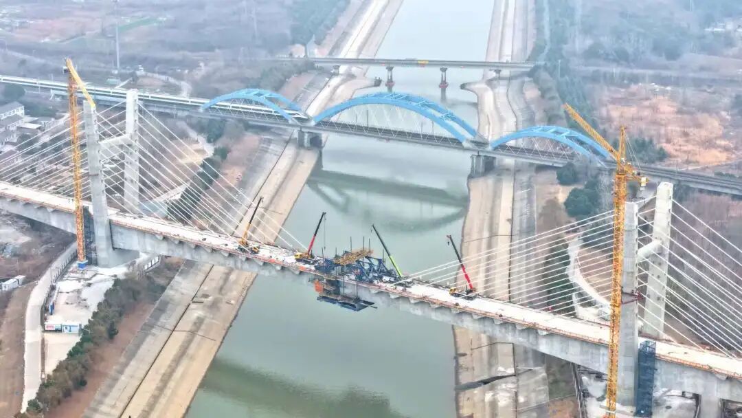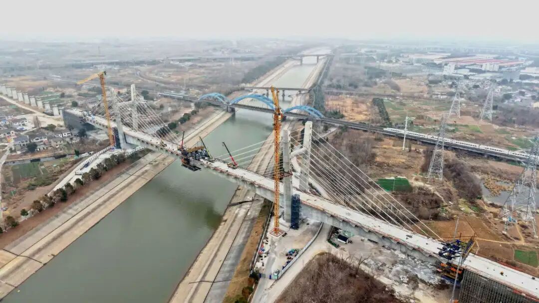 日前,新建上海至南京至合肥高速铁路(以下简称沪宁合高铁)南京段控制性工程——六合特大桥跨马汊河斜拉桥成功合龙。标志着六合特大桥连续梁施工全部完成,为后续桥面系施工与全线贯通奠定了坚实基础。