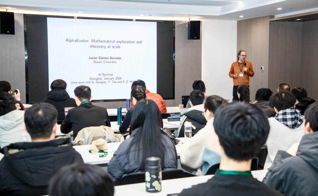 下午,塞拉诺教授则以《规模化数学探索与发现》为题,重点介绍了其与谷歌DeepMind、菲尔兹奖得主陶哲轩共同训练的AI数学发现系统——进化编码智能体AlphaEvolve。该智能体能够自主探索、发现并推广数学结构,已成功解决来自分析、几何、组合学等领域的非平凡性数学难题。讲座展现了人工智能系统在规模化数学研究中的巨大潜力,气氛热烈。