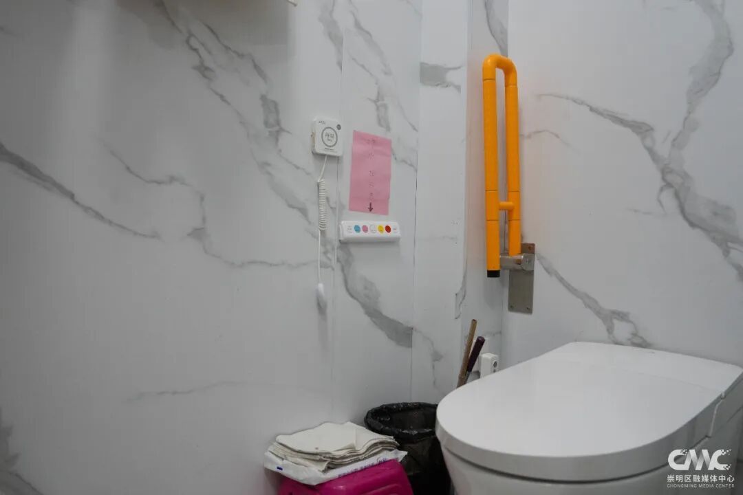 据了解,老两口均年过八十,顾阿婆腿脚不便,老伴患有认知障碍。为方便老人们正确使用辅具的一些功能,上面还特意用色彩和大号字作了提示。“比如,我们采用了彩色的按钮,让老人能够记住哪个是冲水的,哪个是冲洗的,但是阿姨叔叔有时候还是会忘记,所以我们还给他们贴了张纸条。”安装企业的工作人员张利萍告诉记者,“改造中,还为老人安装了认知探头、紧急呼叫铃,子女在外工作之余,能够及时关心到老人在家里的安全情况。地面、墙面也做了缓冲防护板,避免老人跌倒摔伤。”