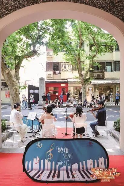 在这里,惠民消费热潮持续涌动:街道统筹淮海集团、永业思南、瑞金宾馆等区属企业,组织百家商户推出“628”系列特惠活动,从舌尖美味到潮流零售,从文化体验到生活服务,全方位覆盖市民多元需求;知名企业轮番入驻快闪,为街区持续注入新鲜感;39家绿色优质企业携百余种尖货亮相“思南夏至音乐日×侬好优品”市集,沉浸式绿色消费体验圈粉无数。