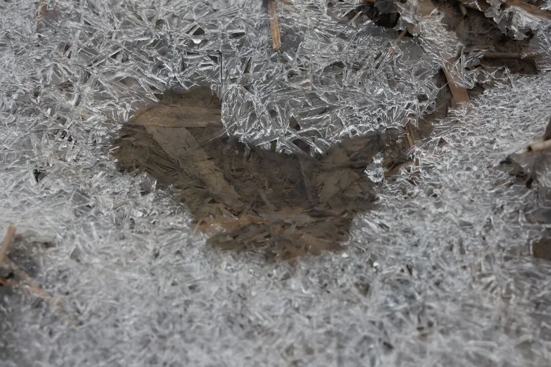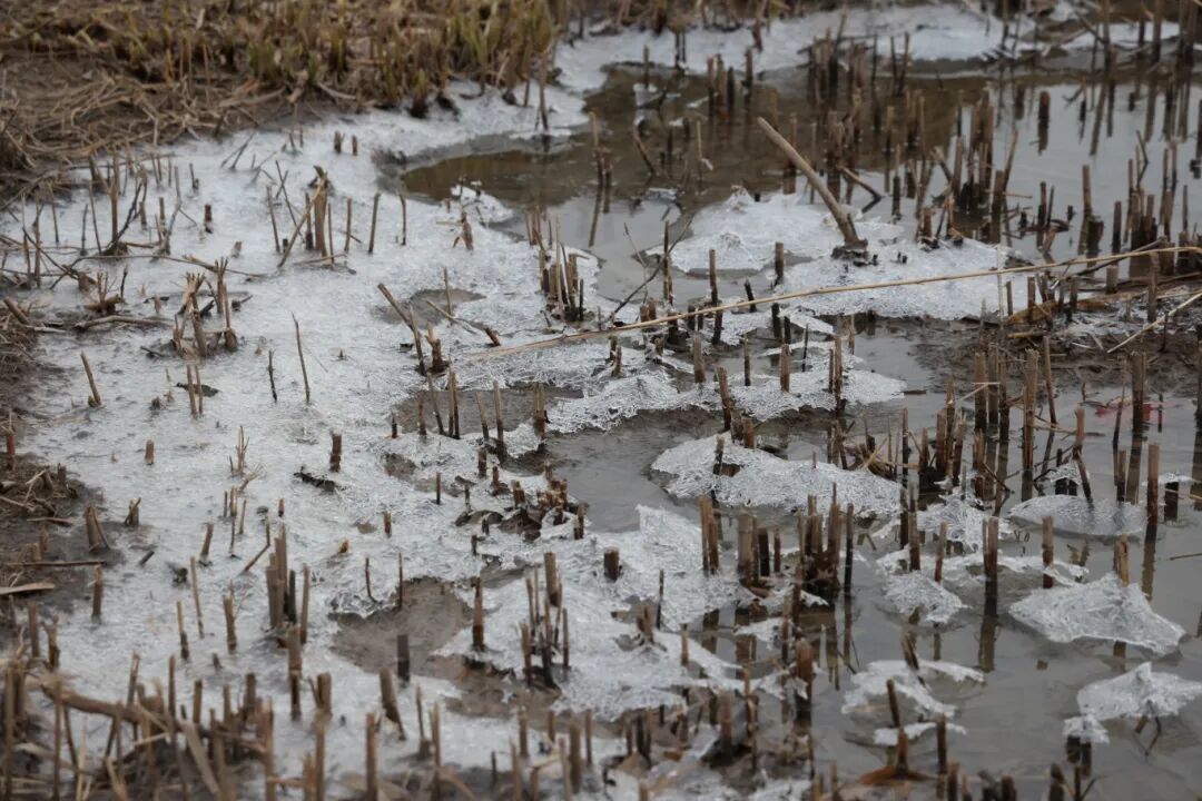 看到湖边结了薄冰