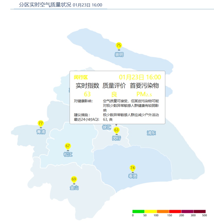 闵行区AQI为63,良。