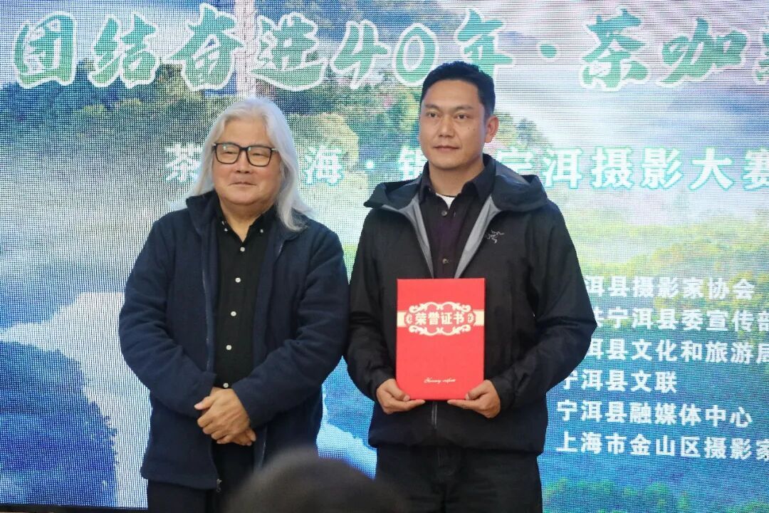 鲍利辉为“茶乡云海·锦绣宁洱摄影大赛”获奖者颁发证书