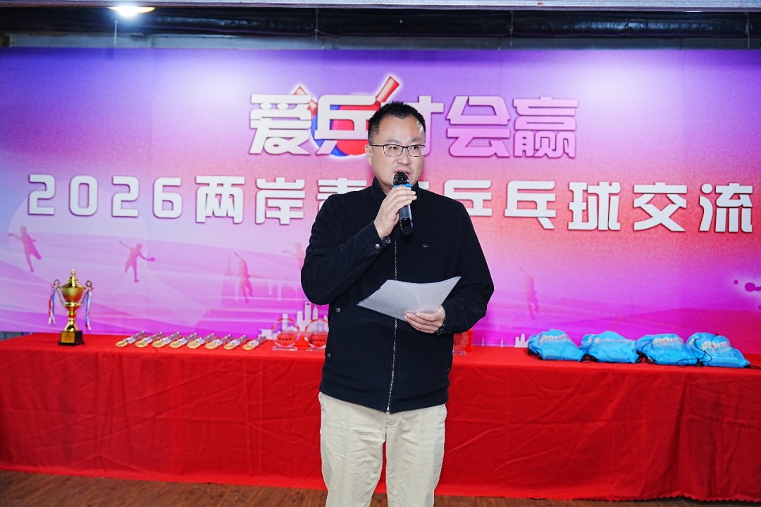 闵行区台办副主任王麟在致辞中表示,乒乓球承载着两岸同胞的共同热爱,更是拉近心灵距离的情感纽带,本届交流赛为两岸青年创造了面对面交流的宝贵机会,让两岸青年共同展现青春风采,深化同胞情谊。闵行区始终秉持“两岸一家亲”理念,持续搭建更多优质交流平台,为两岸青年交往交流、交心交融保驾护航,欢迎广大台青多来上海走走看看,将大陆同胞的热情带回台湾。