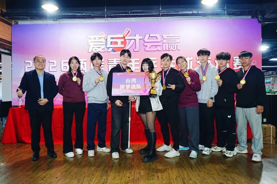 随着开赛球落地,各队伍迅速进入状态,接球的稳健、扣杀的凌厉、防守的缜密,每一个动作都展现着两岸青年的扎实功底与昂扬斗志。银球在球网两端来回穿梭,灵动弧线勾勒出拼搏身影,选手们默契配合、奋勇争先,将青春活力与体育精神诠释得淋漓尽致,场边观众的掌声、欢呼声此起彼伏。经过一天紧张激烈的角逐,最终台湾拼梦战队摘得桂冠。