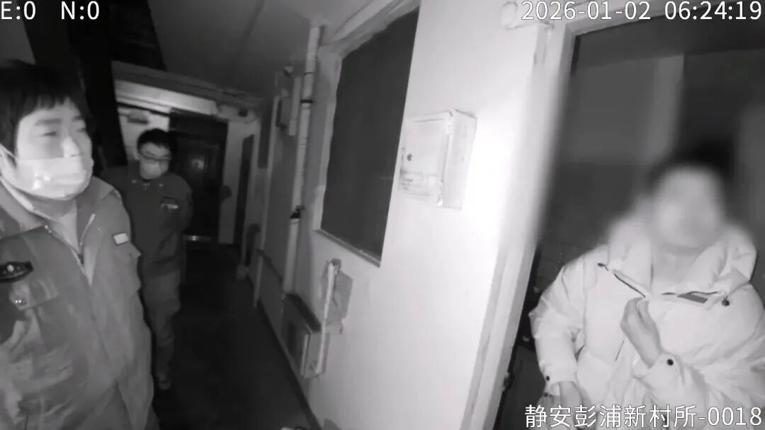 民警先在三楼逐户排查。排查中,民警为清晨敲门打扰向居民安抚解释。直到敲开三楼一户人家,民警才获得关键线索。民警查询了解到503室住有92岁的独居老人俞老伯,耳背且腿脚不便。民警到503室反复敲门,但无人应答。