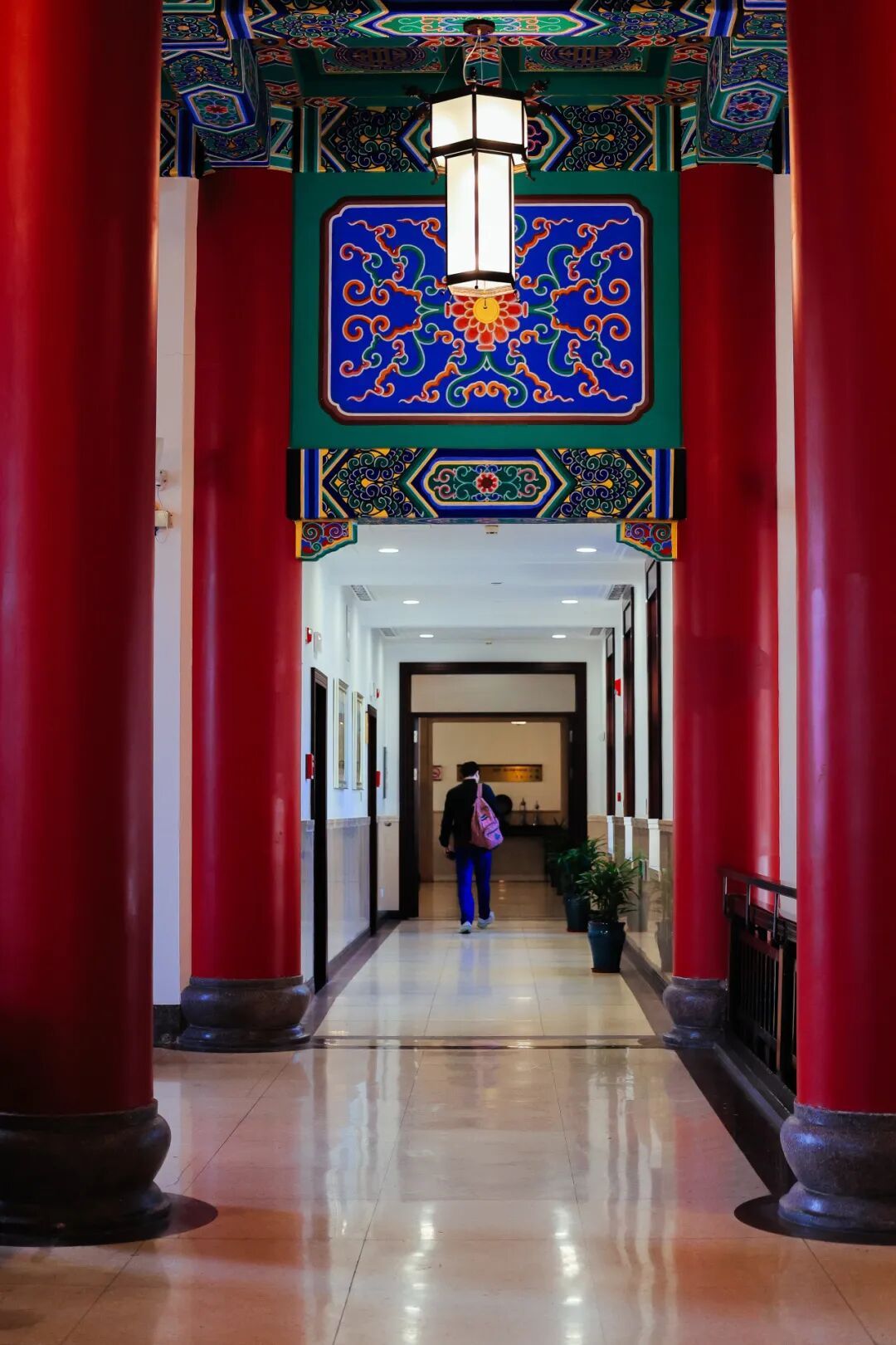 琉璃瓦在阳光下流光溢彩,红漆圆柱与雕梁画栋交相辉映,在杨浦区图书馆前驻足片刻,便仿佛穿梭时光,回到上世纪三十年代的“大上海计划”的宏伟蓝图之中。