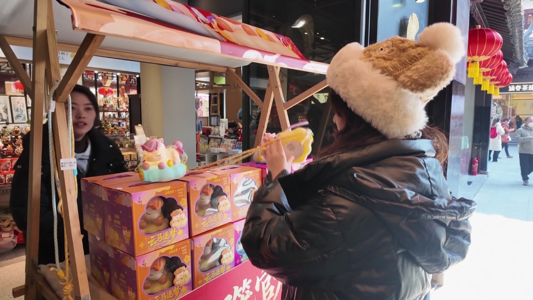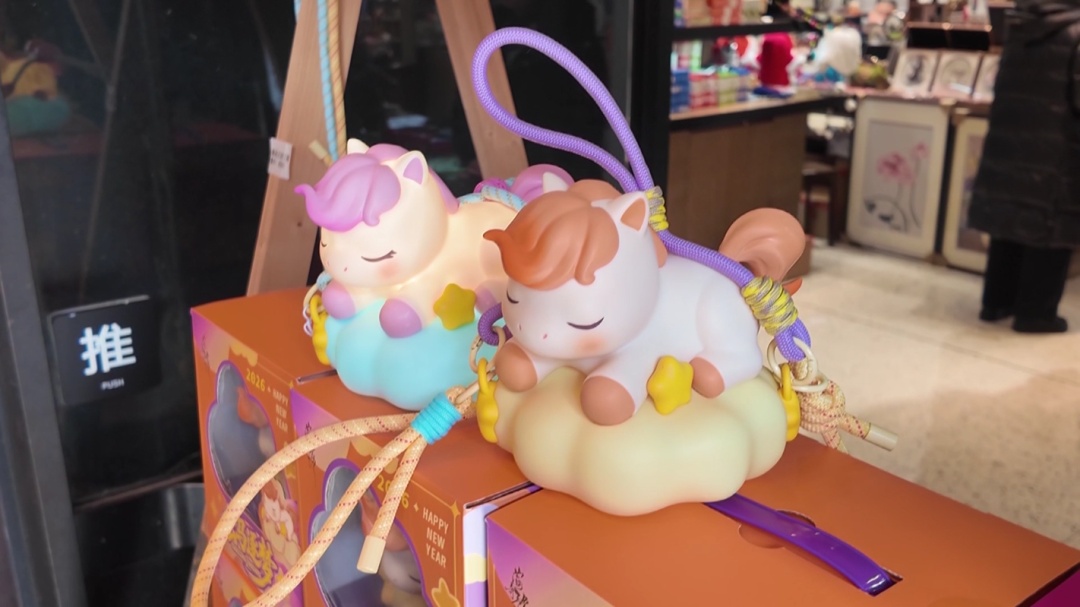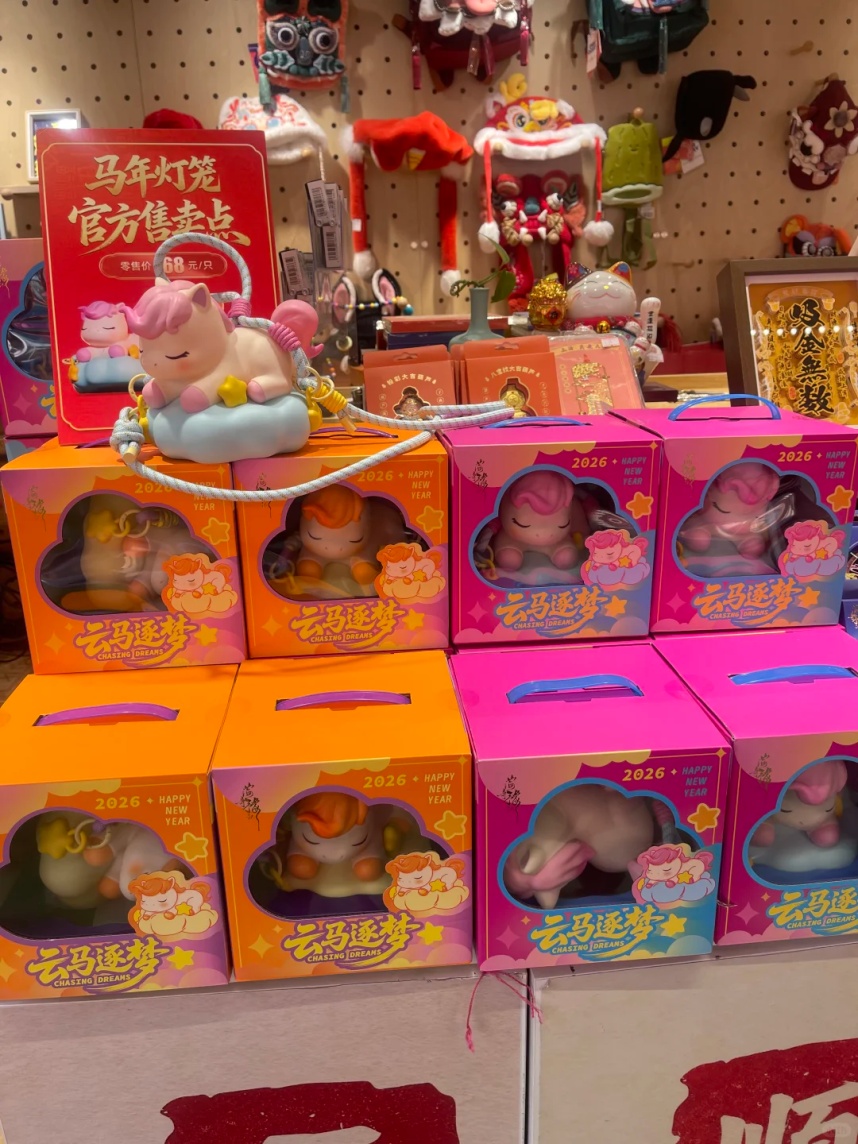 走进豫园文创旗舰店,“云马逐梦”灯笼展台前热闹非凡,不断有市民游客驻足挑选、购买。