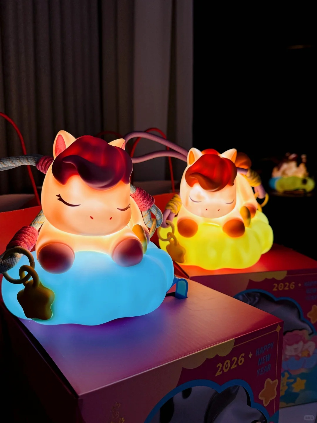 这款灯笼采用搪胶材质制成,共有两个配色,带睫毛的小马是粉蓝配色,宛如梦幻中的精灵;不带睫毛的小马则是黄橙配色,给人温暖活泼之感,且颜色均为萌萌的马卡龙色系,十分讨喜。