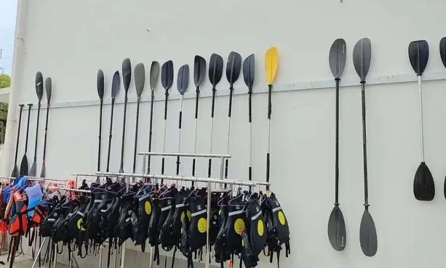 专业救生衣、随时巡逻的冲锋舟、3名教练员及2名安全员组成的团队,共同守护着学员的安全。艇与桨也在迭代——四人艇取代三人艇;铝合金桨替代笨重的铁桨;这里还有全碳素的专业艇,身价数万元一艘,让学员们体会到轻便与速度并存的乐趣。