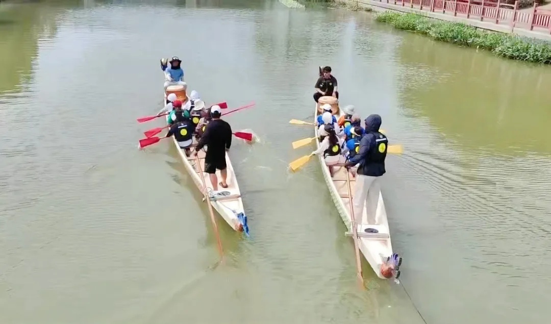 为何选择许泾村?岳教练告诉我们,正是这条河的“直”与“静”,让他一眼就相中了这里。全长5.2公里、河口宽45米的丰盛河河道笔直开阔,视野毫无遮挡。作为非航道,这里没有往来船只的干扰,水面常年平稳,能同时容纳3至8艘艇开展训练,完美适配从新手体验到专业队员集训的全场景需求,还有学员从浦江镇等地慕名而来。“专业教练,价格实惠!”学员们道出了吸引力的核心。