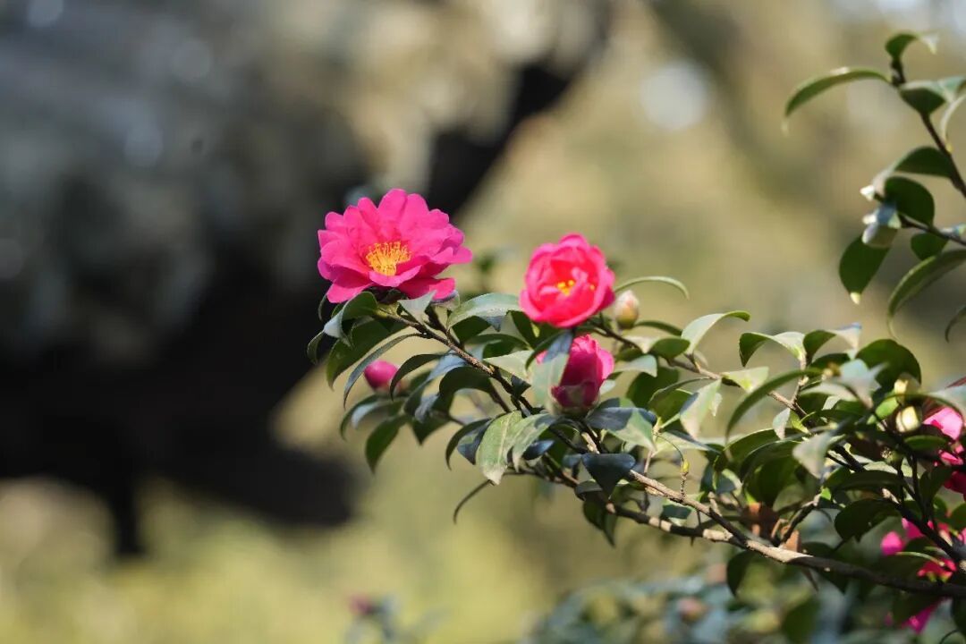寒冬时节,古猗园内却呈现出一派生机勃勃的景象。50余株茶梅迎着寒风傲然绽放,宛如冬日里的“花中君子”,为清冷的园林添上一抹灵动而绚丽的色彩。
