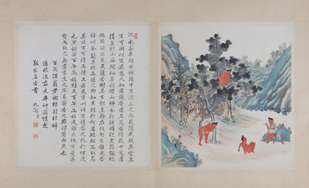 走进第二单元“香溢琼崖”,清代《琼黎风俗图》中的《采香图》图文并茂地向观众生动地展示了黎族先民寻香、采香、勾香、卖香的场景。唐宋以来,海南香业方兴未艾,海南人不仅采香也用香,从熏香风俗到生活用具,再到治病用药,展览通过器物、文献等构建一幅极具沉香特色的海南“香生活”。