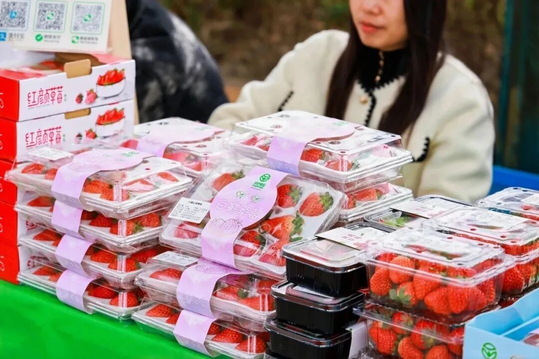 果蔬摊位满眼鲜活,带露的金奖红颜草莓饱满多汁,一元一斤的时令鲜蔬新鲜欲滴,市民在家门口就能买到原生态农家菜。