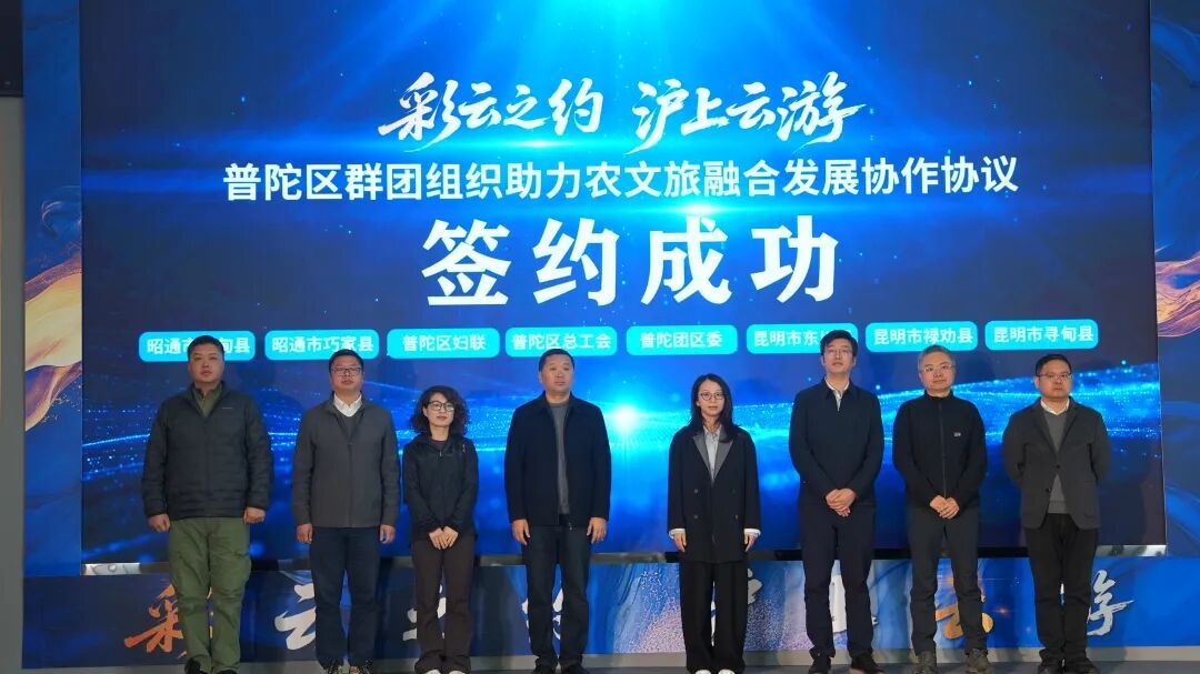 1月22日上午,普陀区合作交流办联合云南省昆明市,昭通市农业农村局、文旅局以及对口帮扶县区,在昆明市举办“彩云之约 沪上云游”——普陀区沪滇协作助力农文旅融合发展主题推介活动。 活动现场 昆明市文旅局与昭通市文旅局分别围绕滇池之滨的自然奇观、石林秘境的地质瑰宝,以及大山包的生态灵韵、豆沙关的古镇风韵等资源开展文旅推介,展现了两地农文旅融合的多元业态与广阔前景。 现场,普陀区文旅局与昆明市文旅局、昭通市文旅局共同签订《助力农文旅融合发展合作协议》,将联合策划特色农文旅产品与精品线路,开展资源对接与宣传推广,共同激活市场潜力;昆明市东川区、禄劝县、寻甸县及昭通市鲁甸县、巧家县,与普陀区总工会、团区委、区妇联等群团组织签订《普陀区群团组织助力农文旅融合发展协作协议》,为对口帮扶地区农文旅资源走向更大市场搭建了坚实桥梁。 春秋旅游社、长风文旅、共比邻、东礼等上海重点平台企业及旅行社代表受邀成为对口帮扶地区农文旅发展合作伙伴。现场还举行了首批“农文旅体验推介官”与“农文旅融合发展专家团”聘任仪式。 签约仪式 据普陀区合作交流办介绍,将通过“实地调研+现场推介+签约聘任”的多元形式,整合沪滇两地的资源优势、市场活力与人才智慧,为乡村振兴注入强劲动能。2025年,普陀区助力对口帮扶地区打造东川区花沟村、禄劝县克梯村、鲁甸县安阁村等7个农文旅融合示范村,实现从传统农业村到农文旅融合示范地的转型,带动村民人均收入显著增长,成为沪滇协作的成功典范。2025年,普陀区合作交流办联合多部门,共引导9万余名上海游客赴昆明旅游。