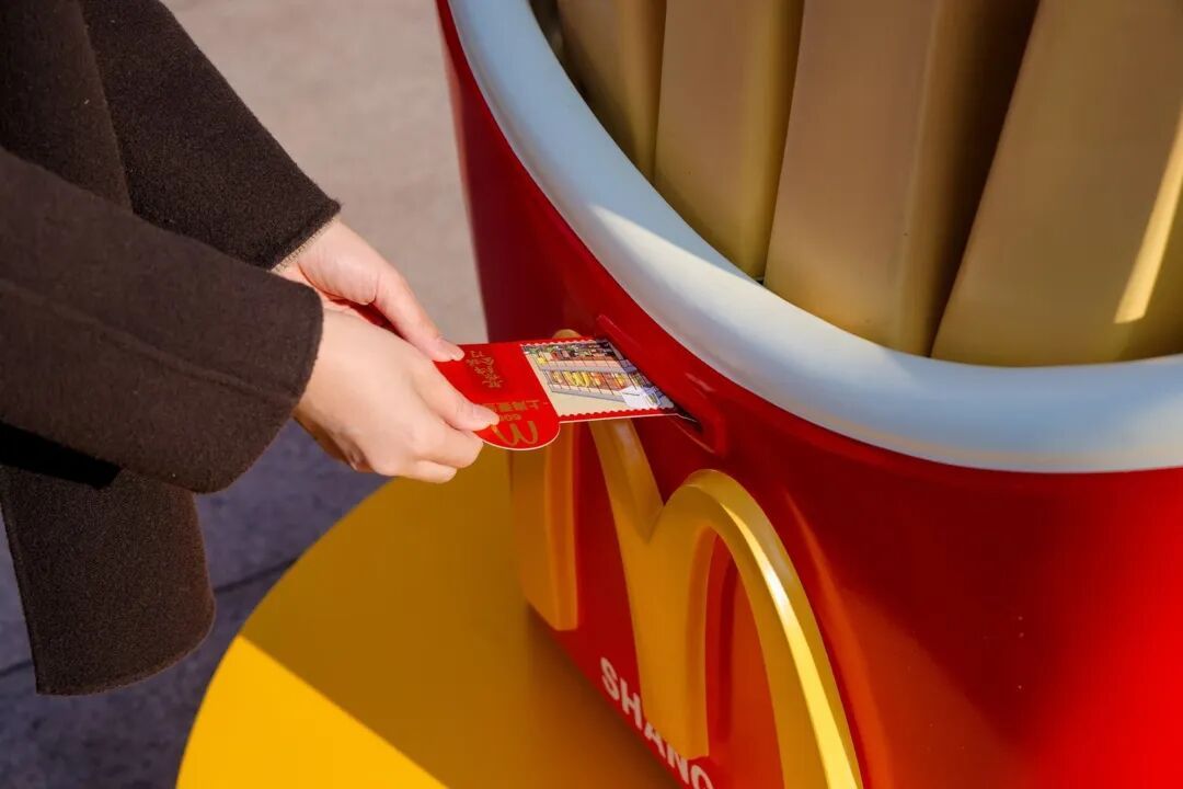 同时,城市中心旗舰餐厅长期设置“薯条邮筒”与“开心魔力盒”等互动装置,增强到店的沉浸式体验。其中,“薯条邮筒”为旗舰店专属打造:顾客通过麦当劳 App 下载注册并任意消费,即可领取旗舰店限定主题明信片;将明信片投入“薯条邮筒”后,餐厅将定期统一寄出,让来自南京东路商圈的美味记忆与城市温度“寄送到家”。位于一二层中间的“哈哈镜”也成为热门拍照地。
