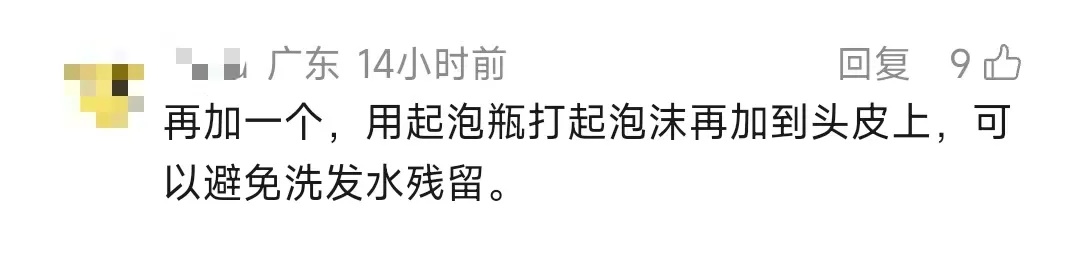 尤其是头顶、发际线、后脑勺、耳后这几个容易残留泡沫的部位,同时用指腹轻轻揉搓头皮,帮助冲净藏在发根处的泡沫。