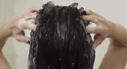 步骤一:用温水冲淋头皮和发丝1-2分钟,目的是让头皮上的灰尘、油脂先松动。