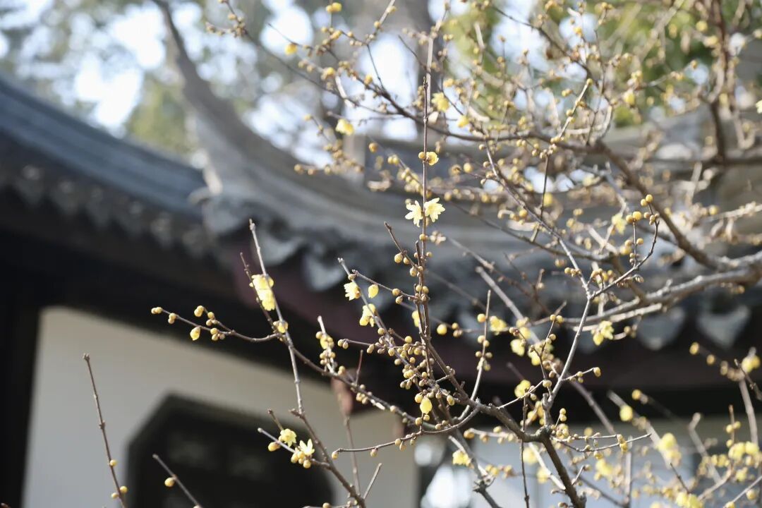近日,随着气温走低,嘉定各处的蜡梅悄然绽放,金黄的花朵缀满枝头,给冬日增添了一抹亮丽的色彩。